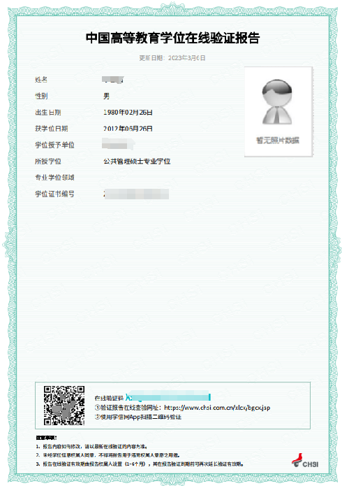 2.如果有硕士学位,上传《中国高等教育学位在线验证报告》(在线验证有效期请设置为180天),验证二维码必须清晰可读,申请网址:https://www.chsi.com.cn/xwcx/index.jsp